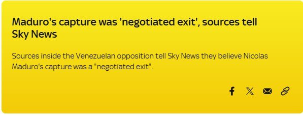منابعی در داخل اپوزیسیون ونزوئلا به اسکاینیوز اعلام کردهاند که معتقدند دستگیری نیکلاس مادورو در چارچوب یک «خروج مذاکرهشده» انجام شده است.