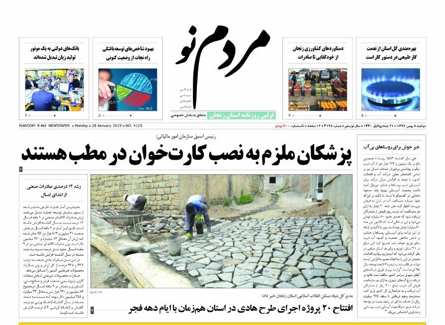استانها زنجان ۸ بهمن ۱۳۹۷ - ۰۹:۰۱ دریافت تصاویر صفحه اول روزنامههای استان زنجان ۸ بهمن ۹۷ برچسبها روزنامه های استان زنجان صفحه اول روزنامه های زنجان صفحه اول روزنامه های استان ها مطالب مرتبط صفحه اول روزنامههای ۸ بهمن ۹۷