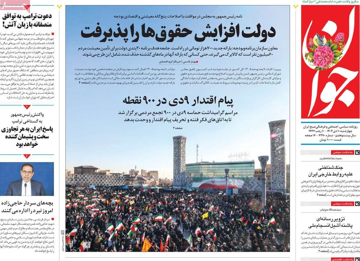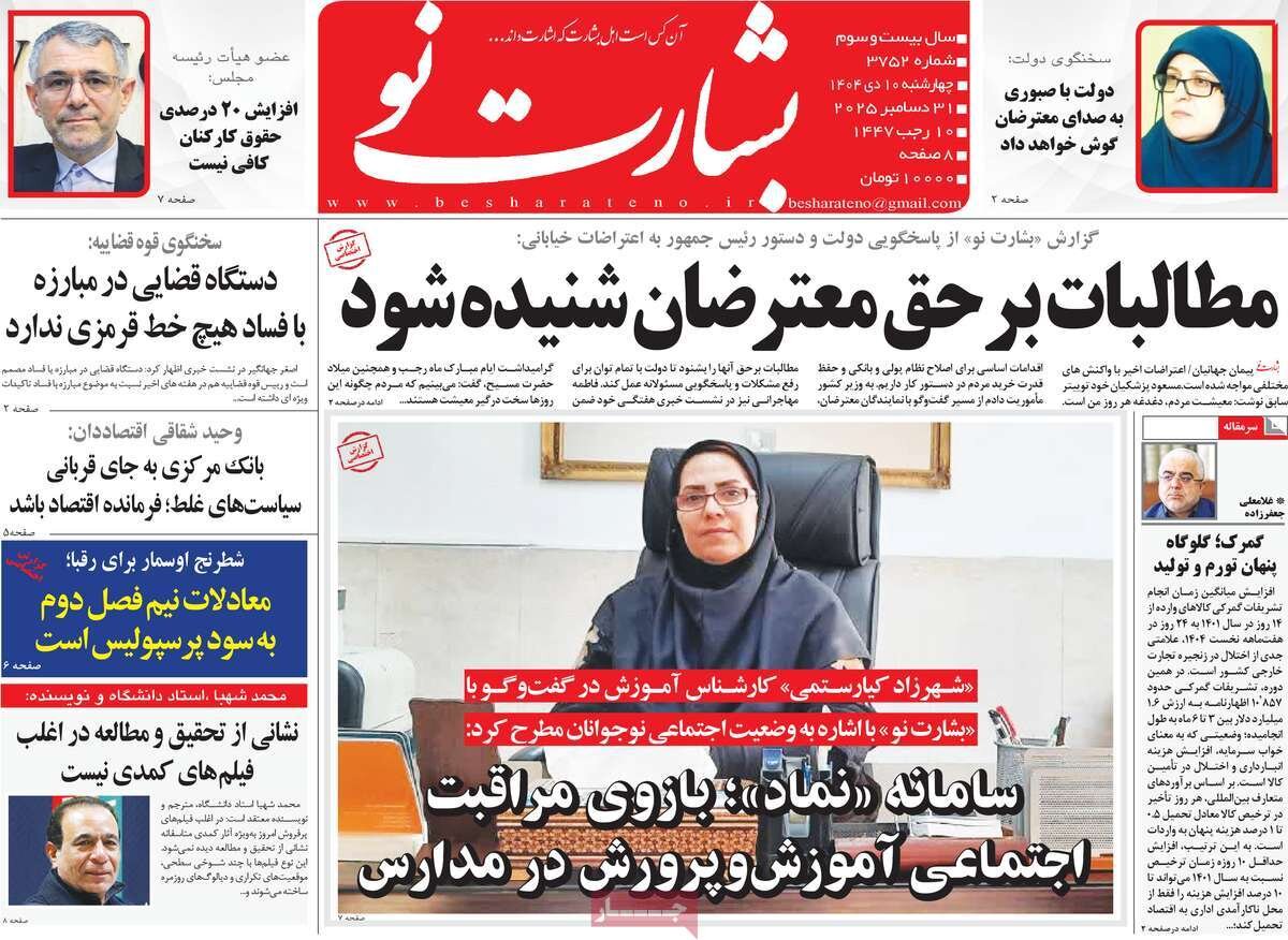 مجله مهر دکه روزنامه ۱۰ دی ۱۴۰۴ - ۰۹:۲۶ دریافت تصاویر روزنامههای صبح چهارشنبه ۱۰ دی ۱۴۰۴ روزنامه های امروز درباره دیدار اصناف و بازاریان معترض با پزشکیان و اعضای دولت نوشتند. برچسبها دکه روزنامه روزنامه های امروز صفحه اول روزنامه ها مطالب مرتبط صفحه اول روزنامههای استان البرز چهارشنبه دهمدیماه