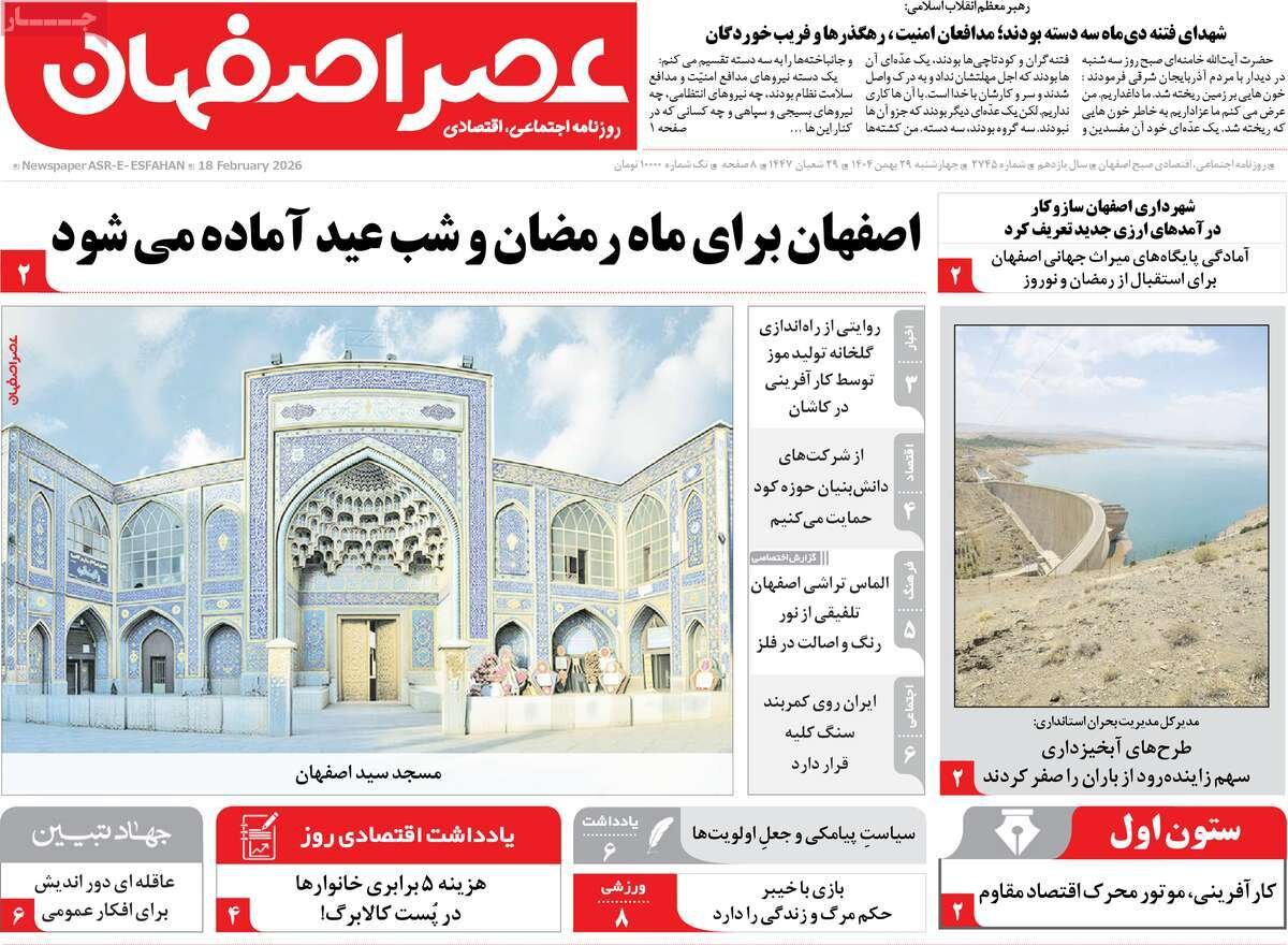 استانها اصفهان ۲۹ بهمن ۱۴۰۴ - ۰۷:۳۷ دریافت تصاویر صفحه اول روزنامه های اصفهان چهارشنبه ۲۹ بهمن ماه برچسبها صفحه اول روزنامه های اصفهان صفحه اول روزنامه ها صفحه اول روزنامه های استان ها مطالب مرتبط صفحه اول روزنامههای استان زنجان ۲۰ آبان صفحه اول روزنامه های استان زنجان ۲۴بهمن صفحه اول روزنامه های استان زنجان ۲۷ اسفند